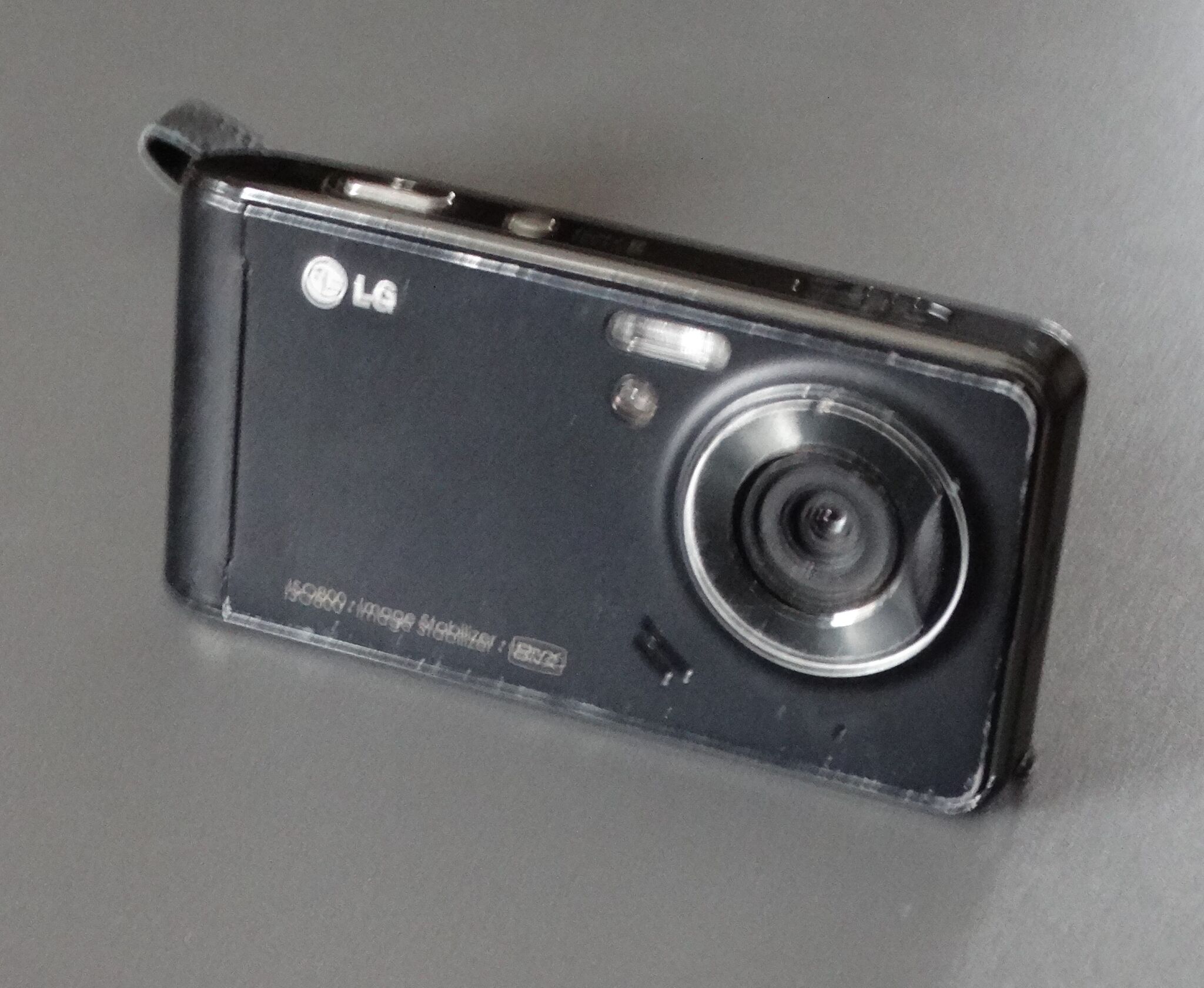 kompaktní digitální fotoaparát značky LG, typický pro éru kolem konce 2000.